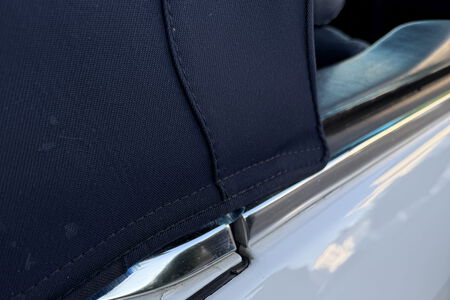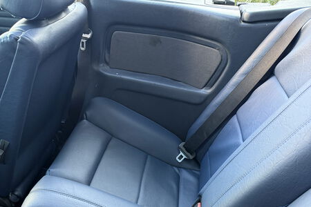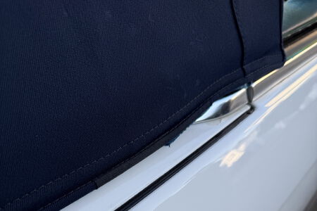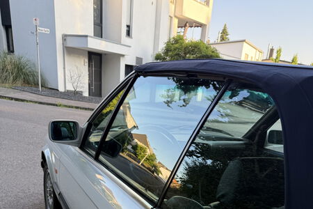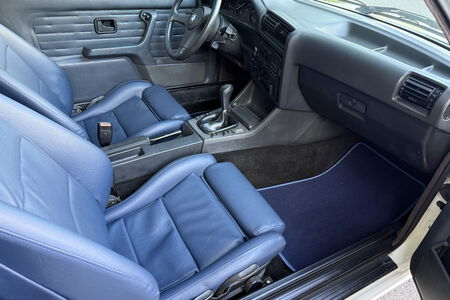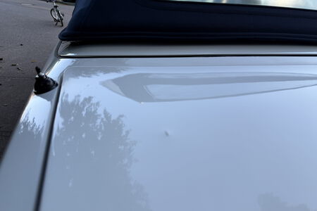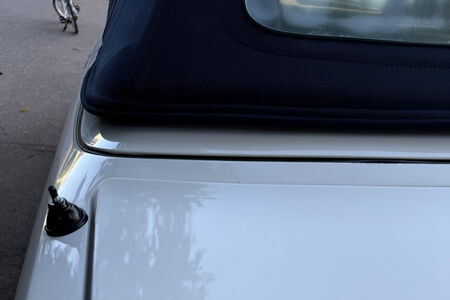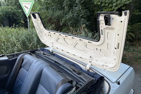 Die Farbkombination ‚außen weiß mit blauem Stoffdach und blauer Innenausstattung’ ist sehr zeitlos und stimmig. Der BMW wurde in den USA vor Jahren in ordentlicher Qualität neu lackiert, das Dach und die Innenausstattung sind in einem guten bis sehr guten Zustand.