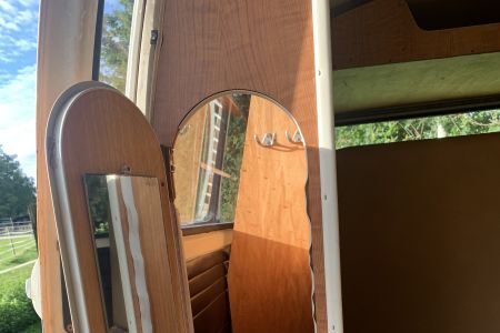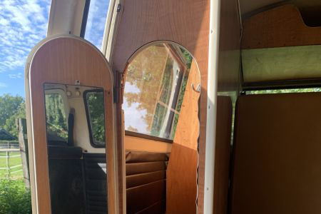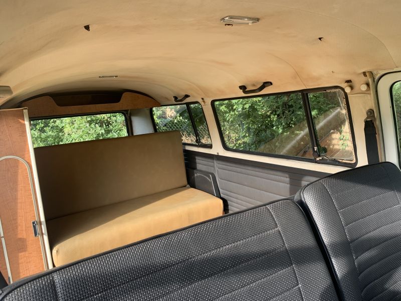Durch den originalen Westfalia Ausbau (Kombination aus Schränken und Klappbett) ist der Bus perfekt für lange und/oder kurze Urlaubstouren geeignet.